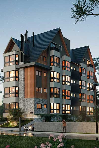 EM CONSTRUÇÃO Apartamento amplo e luxuoso que oferece conforto e estilo. Condomínio com piscina aquecida, hidromassagem e área gourmet com churrasqueira em um ambiente com muita natureza. Endereço: Rua da Floresta , Centro – Gramado / RS Área privativa: 99,40m2 Área total: 144m2 Dormitórios: 2 , sendo 2 Suítes Banheiros: 3 Garagem: 1 Andar: 2º (segundo) Andar Preço: R$ 1.500.000 Mais detalhes DESCRIÇÃO DETALHADA DO IMÓVEL Apartamento amplo e luxuoso que oferece conforto e estilo. Condomínio com piscina aquecida, hidromassagem e área gourmet com churrasqueira em um ambiente com muita natureza. Localizado junto ao centro de Gramado, no local perfeito para você aproveitar tudo de melhor que Gramado oferece. Localizado no condomínio em construção, Residencial Château du Centre Ville, este imóvel é ideal para investidores que tem interesse em comprar imóveis na planta que oferecem alto potencial de valorização. Composição da planta baixa: 2 suítes espaçosas com sacada fechada frente leste pegando sol da manhã, lavabo, sala de estar com lareira, sala de jantar com sacada fechada e ótima iluminação natural, cozinha ampla com churrasqueira , área de serviço, vaga de garagem. Observação: As imagens do apartamento mobiliado são uma sugestão de design de interiores, o preço indicado não inclui a mobília. Distância dos pontos de referência: Rua Coberta: 1400 metros Palacio Festival de Cinema: 1400 metros Avenida Borges de Medeiros: 400 metros Restaurante McDonald’s: 700 metros INFORMAÇÕES GERAIS E CONDOMÍNIO: Condomínio com piscina aquecida e hidromassagem; Condomínio com área gourmet integrada a piscina; Condomínio com controle de acesso; Condomínio com monitoramento por câmeras; Suítes com janelas do piso ao teto, tipo sacada fechada; Apartamentos com piso aquecido (opcional); Janelas em PVC com vidros duplos Teto rebaixado em gesso Pisos em porcelanato, laminado ou vinílico Esperas para lareira e churrasqueira Contadores Individuais: luz , agua, gás Fachada revestida com pedra e madeira Prédio com elevador e acessibilidade Apartamentos com 3 posições solares Sistema a gás para aquecimento de água Localização Mais fotos